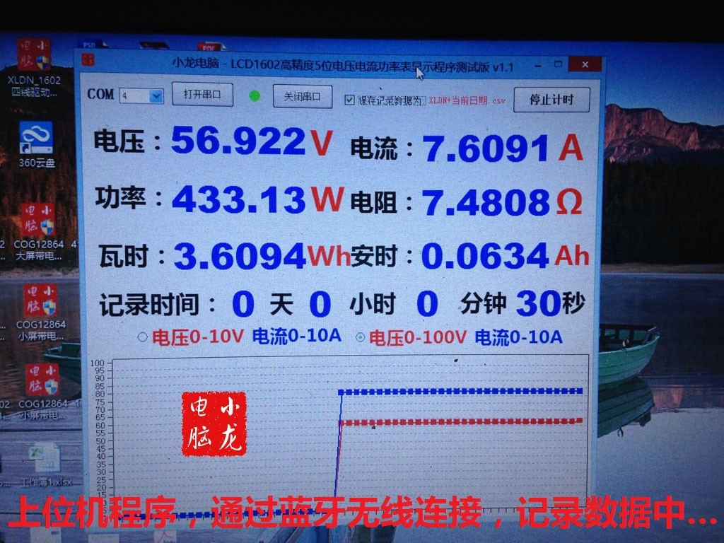 [小龙电脑]高精度功率表配合电子负载联动控制实现给电瓶测试容量